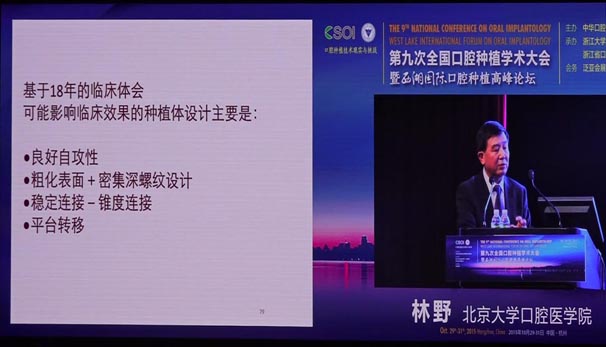 會(huì)議期間國(guó)內(nèi)知名口腔專家針對(duì)當(dāng)前口腔種植領(lǐng)域熱點(diǎn)進(jìn)行了精彩的學(xué)術(shù)演講。其中北京大學(xué)口腔醫(yī)學(xué)院林野教授的演講主題是“種植體設(shè)計(jì)及臨床意義”。